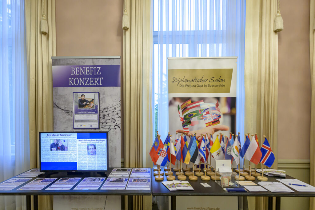 Aber auch die Förderung der Völkerverständigung sowie die Förderung von Kunst und Kultur sind Schwerpunkte der ehrenamtlichen Stiftungsarbeit. Dazu sammelt die Stiftung Spenden und organisiert zwei Veranstaltungsreihen seit ihrer Gründung. Dazu zählen die bisher elf Benefizkonzerte mit internationalen Künstlern in der Märchenvilla und das Dialogformat “Diplomatischer Salon – Die Welt zu Gast in Eberswalde”. Diese Reihe erfreut sich großer Beliebtheit. Inzwischen haben 23 Ausgaben des Diplomatischen Salons stattgefunden. Dabei waren bereits 27 Botschafterinnen und Botschafter aus insgesamt 26 Ländern in Eberswalde. Mit dabei das kleinste Land Vatikanstadt, aber auch ein großes Land wie China. Angefangen mit 38 Gästen, zählte die größte Veranstaltung mit dem chinesischen Botschafter über 180 Gäste. Der nächste Salon wird mit dem Botschafter von Costa Rica am 11. November 2025 um 19.00 Uhr in der Stadtbibliothek Eberswalde stattfinden. Anmeldungen dazu bitte an: info@hoeck-stiftung.de