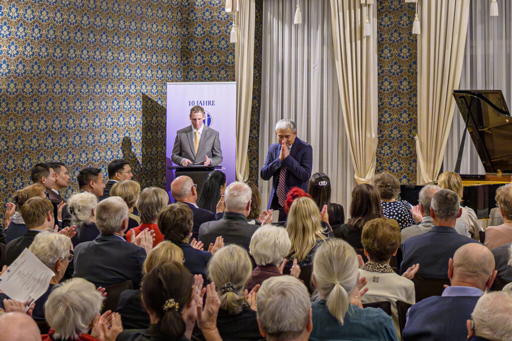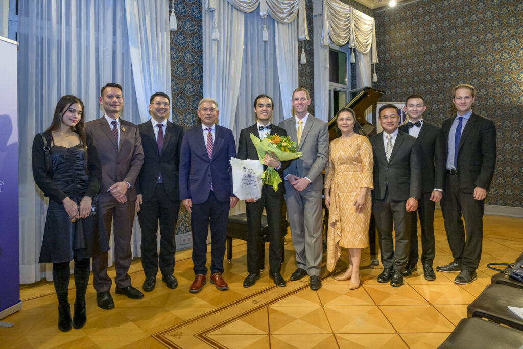 Am 1. Oktober 2025 – dem europaweiten Tag der Stiftungen – hat die Hoeck-Stiftung aus Eberswalde mit einem großen Empfang und Benefizkonzert ihr 10-jähriges Bestehen gefeiert. Für das Klassikkonzert in der Märchenvilla war der thailändische Pianist Gun Chaikittiwatana zu Gast. Der Stiftungsgründer Martin Hoeck konnte über 100 Gäste begrüßen, darunter auch den Botschafter des Königreichs Thailand, S.E. Chittipat Tongprasroeth, seine Stellvertreterin Frau Gesandte Chompoonute Chompookam sowie weitere Vertreter der Königlich thailändischen Botschaft in Berlin. Das Publikum erfreute sich bei dem Konzert nicht nur an Bach, Mozart und Schumann, sondern besonders auch an den drei thailändischen Stücken Lao Duang Duen (“Mondschein-Serenade”, komponiert vom siamesischen Prinzen Benbadhanabongse, Prinz von Pichai. Er sang dieses Lied immer dann, wenn er die Prinzessin von Chiang Mai vermisste.), Long Mae Ping (“Fahrt auf dem Fluss Ping”) und Kang Kao Kin Kluay (“Fledermaus frisst Banane”). Unterstützt wurde das Konzert von der EWE und der Kulturstiftung der Sparkasse Barnim.